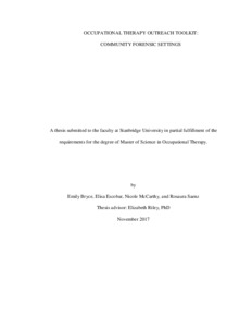 Bryce, Emily and Escobar, Elisa and McCarthy, Nicole and Saenz, Rosaura (2017) Occupational Therapy Outreach Toolkit: Community Forensic Settings. Masters thesis, Stanbridge.